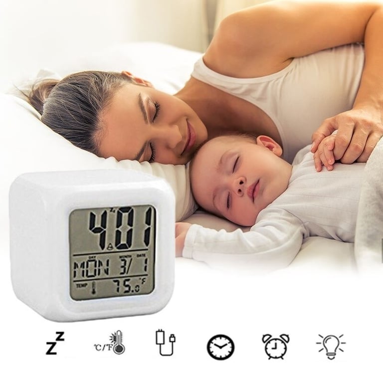 Features: alarm clock, thermometer, date, 7 colour lighting