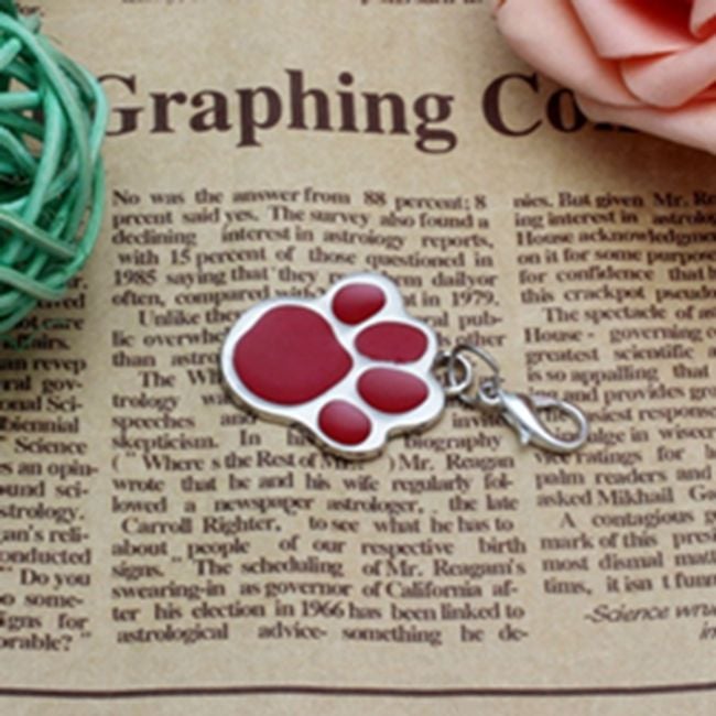 The tag is made of durable material, equipped with a carabiner, and is suitable as an accessory for your dog's or cat's collar.