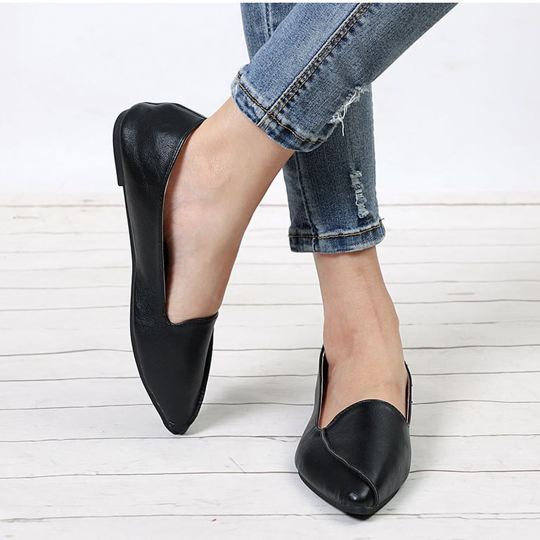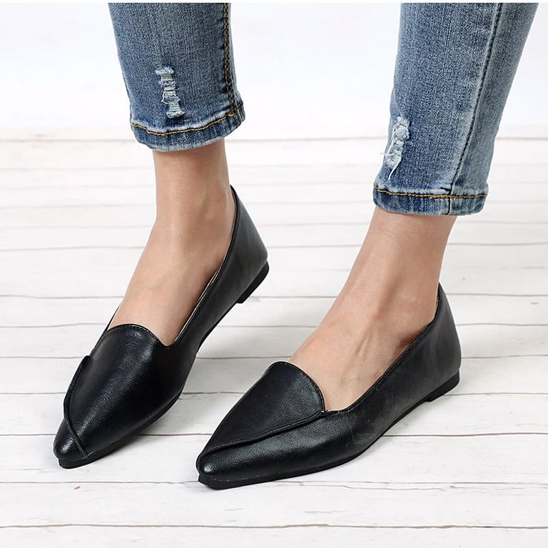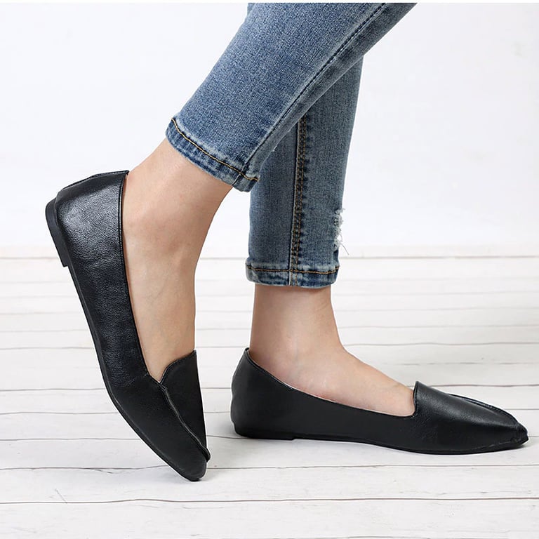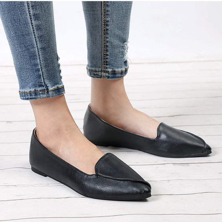 Women's loafers with a pointed toe. Flat sole. Synthetic leather.