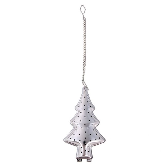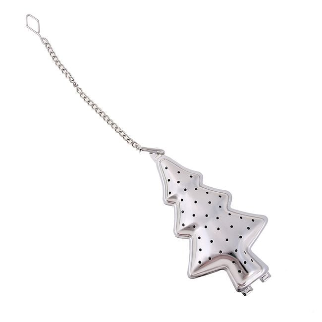 Tea strainer in the shape of a Christmas tree.