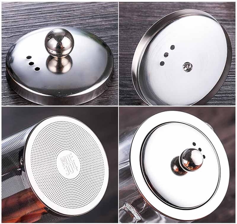 Kettle with a large filter for brewing tea.