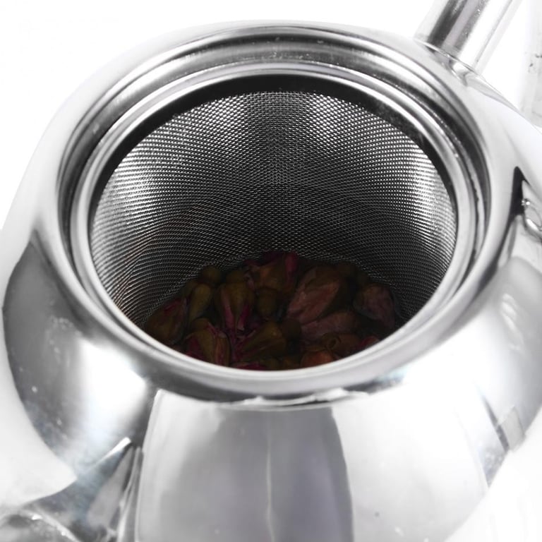 High-quality stainless steel pot with a filter for brewing tea.