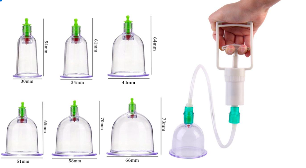 The set includes 6 vacuum cups with a manual suction piston pump.