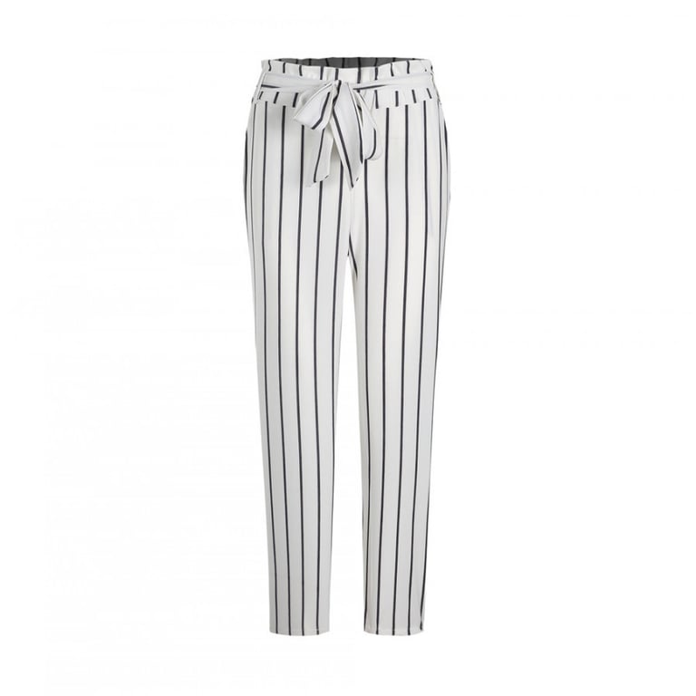 Women's striped trousers with a bow tie.