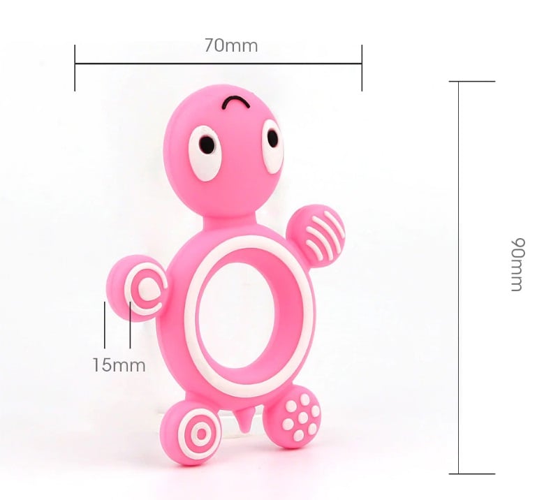 A silicone teething toy for the little ones in the shape of a turtle is sure to please any child.