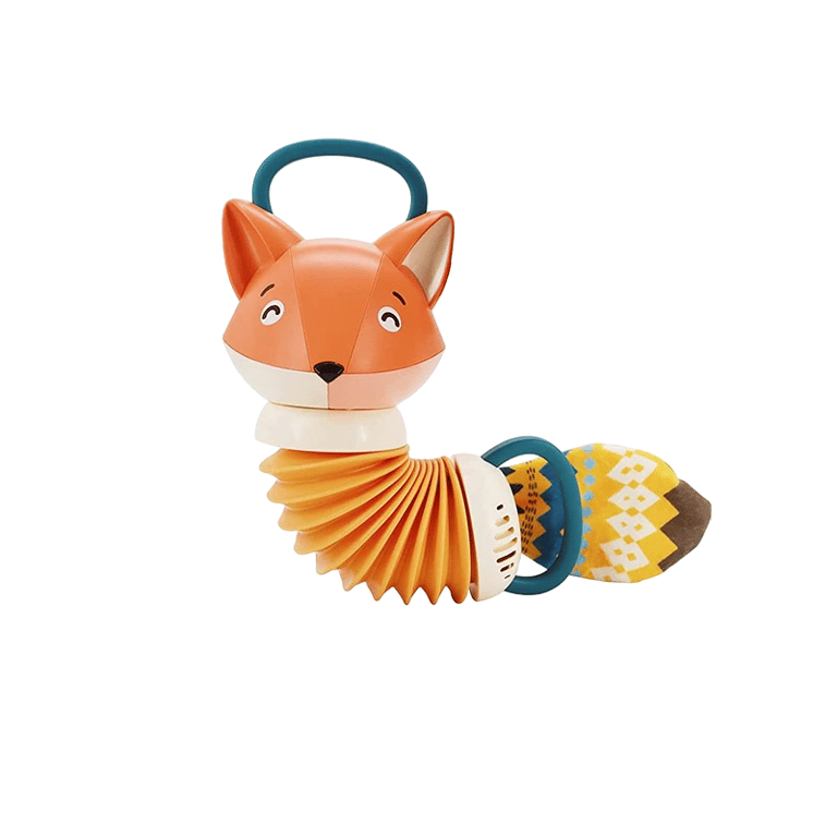 The musical animal in the shape of a fox is ideal for small children. The fox features 14 sound effects, the sounds enhance auditory perception and support the development of hearing. The toy includes a hanging ring for suspension.