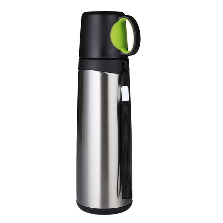 The insulation has two layers. It keeps drinks warm for up to 12 hours.