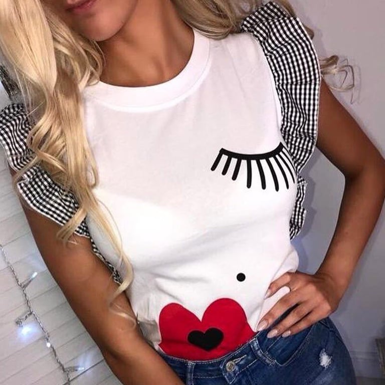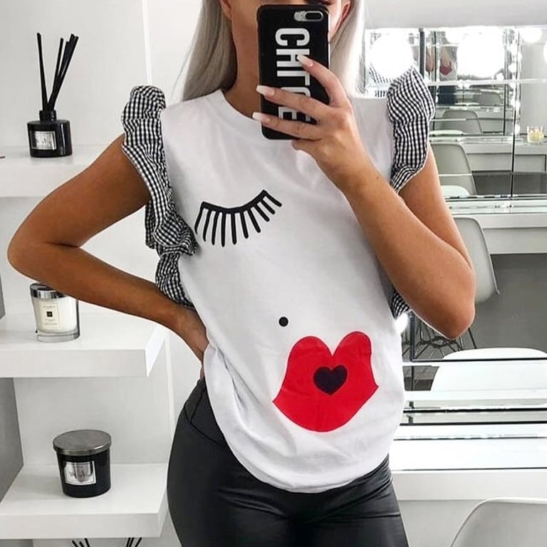 Women's timeless t-shirt with ruffles Kiss.