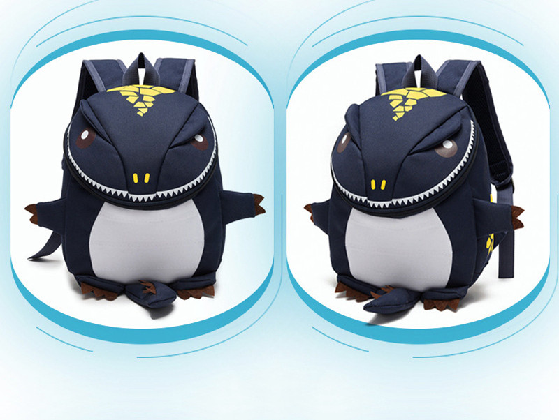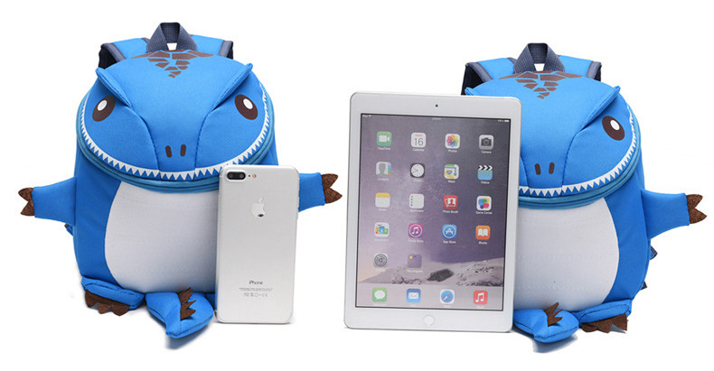 Cute children's backpack in the shape of a dinosaur.