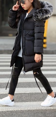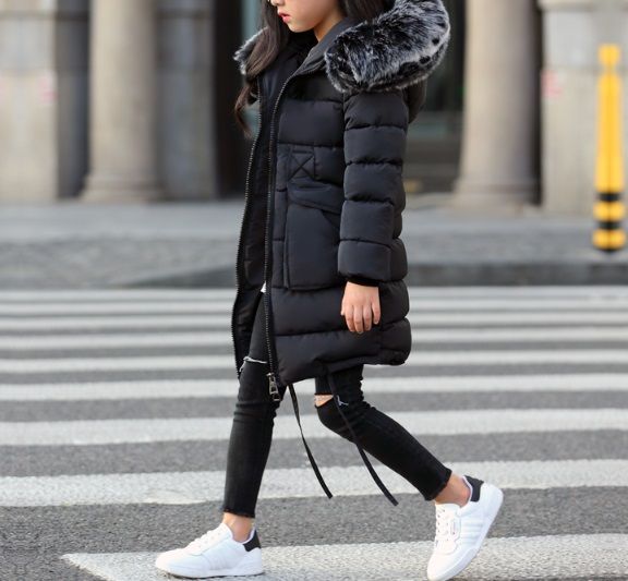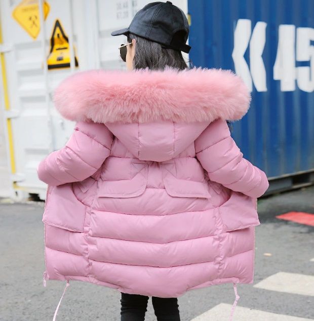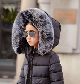 This girls' winter coat with a large fur collar will provide your little girl with plenty of warmth and comfort.