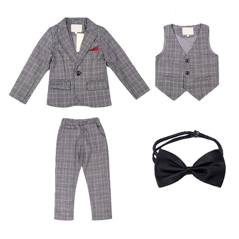 • Option A: 1x jacket, 1x waistcoat, 1x trousers, 1x bow tie
