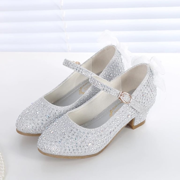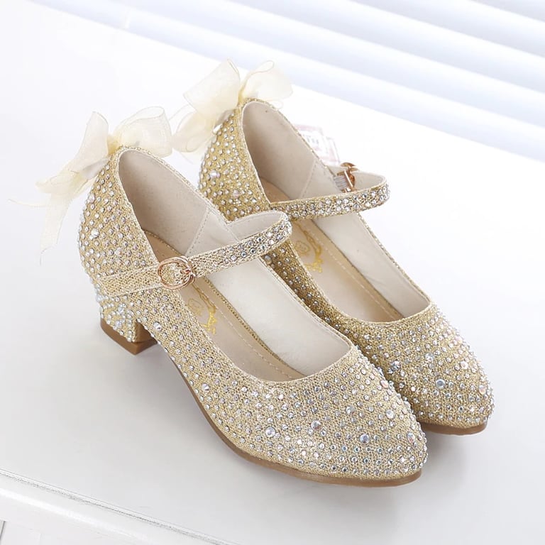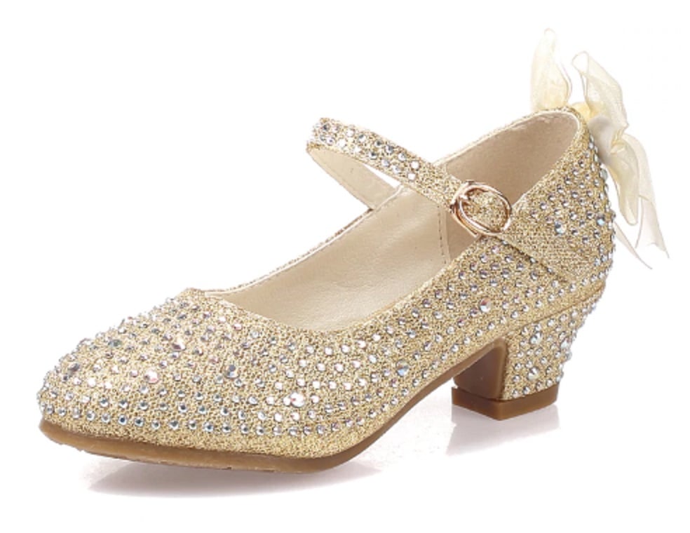 All young ladies will feel like princesses in these shoes adorned with gems and a strap across the instep.