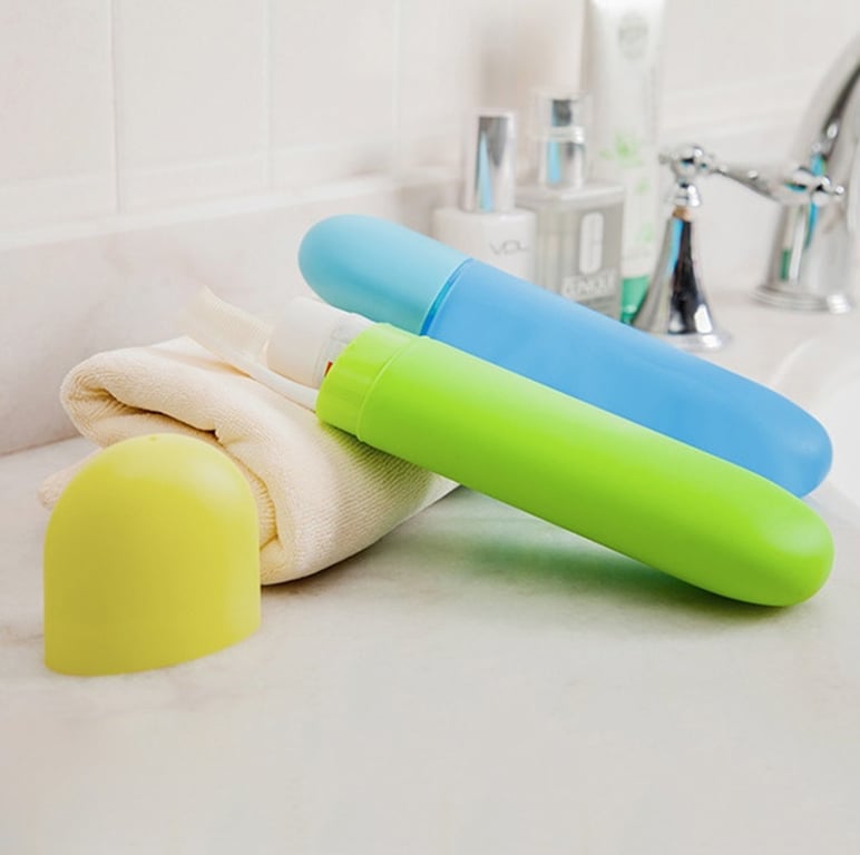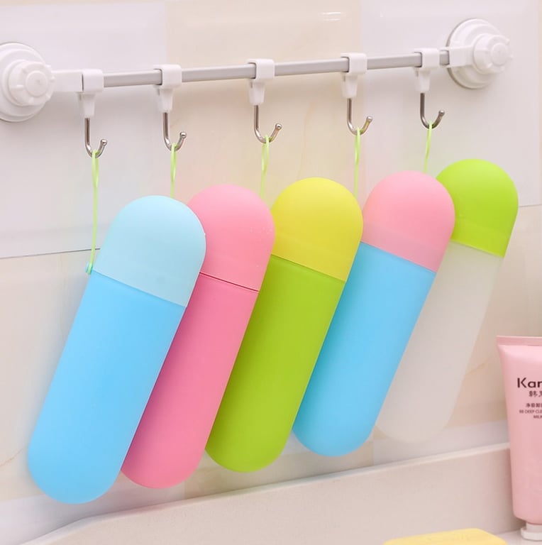 The hanging case for your toothbrush and toothpaste can be hung on any hook in the bathroom, and the lid ensures that your hygiene items stay clean.
