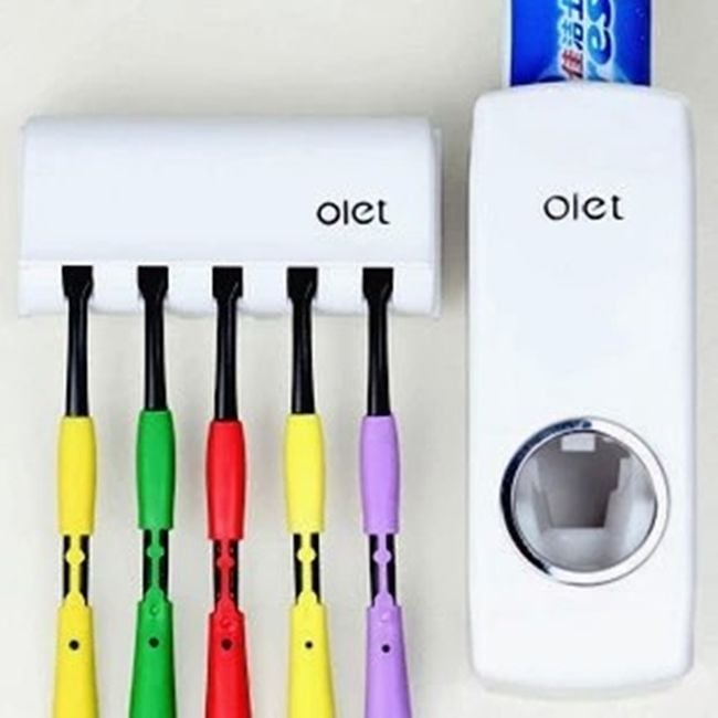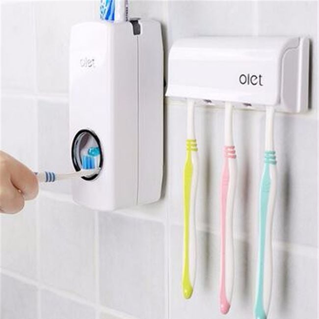 Practical helpers for every bathroom. You will love the toothpaste dispenser and toothbrush holder as they save space around the sink!