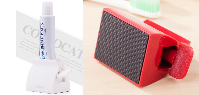 A practical aid for your bathroom. The toothpaste squeezer will help you prevent waste.