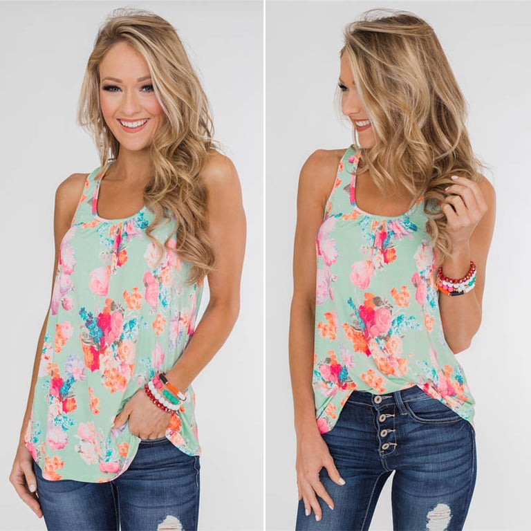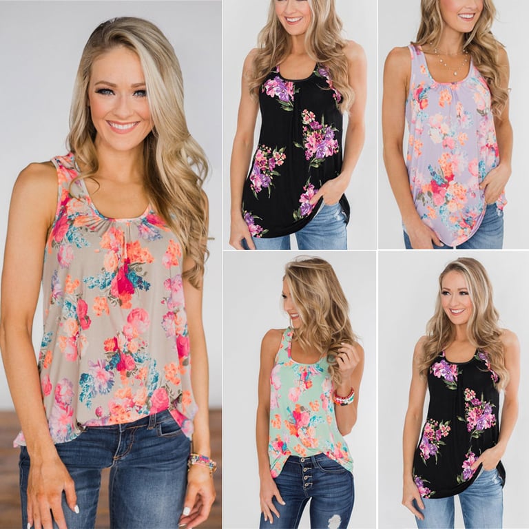 Beautiful women's sleeveless top with a round neckline. Summer floral pattern. Available in various options.