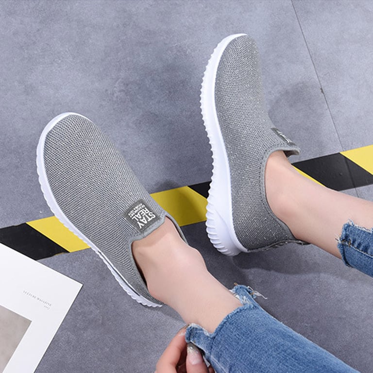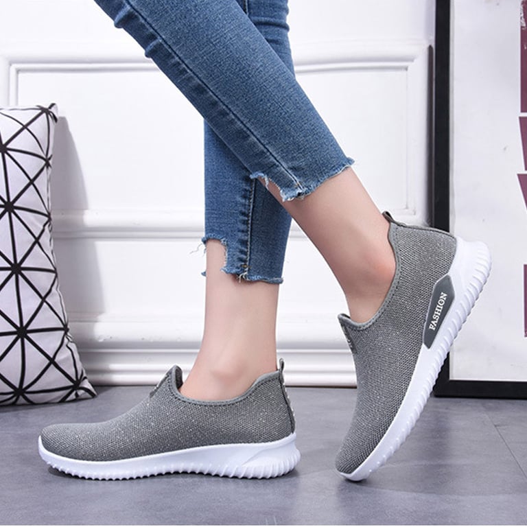 Women's slip-on sneakers. Sparkly thread. Flexible rubber sole with a textured platform. Sturdy heel. Available in multiple colour options.