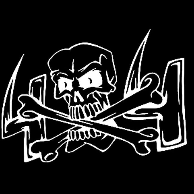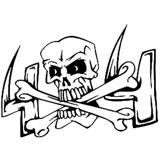Rugged car or motorcycle sticker in the shape of a skull and crossed bones.