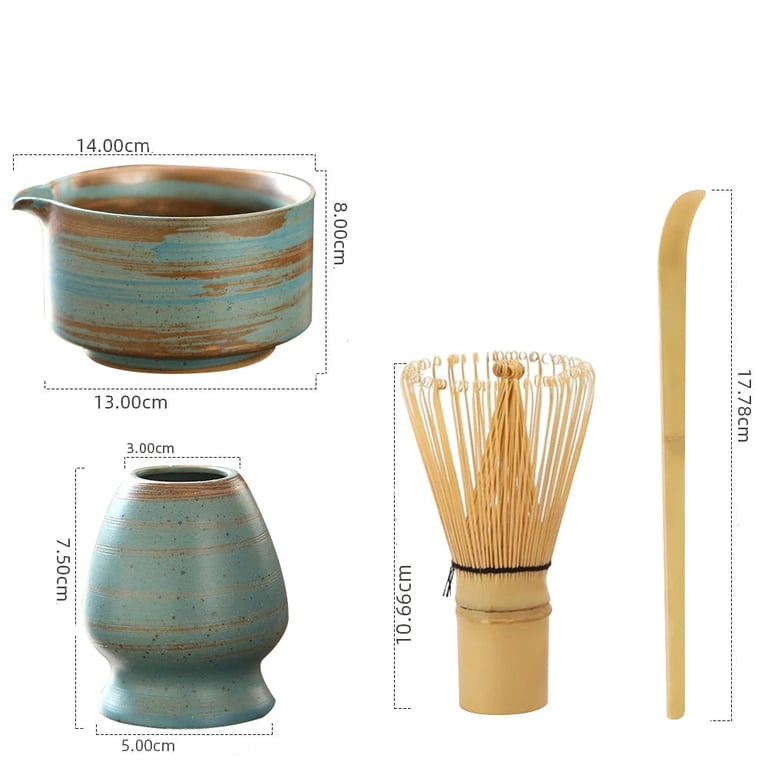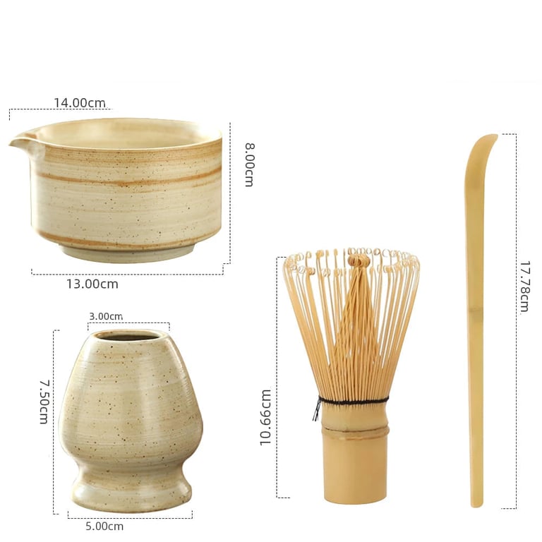 Enjoy the authentic ritual of preparing matcha tea with this traditional Japanese set. It includes everything you need – a bamboo whisk (chasen), a ceramic bowl (chawan), a cup and a spoon. Perfect as a gift or a stylish addition to your tea routine.