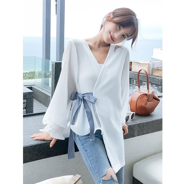 The blouse is wrapped in the middle, which gives it an elegant appearance.