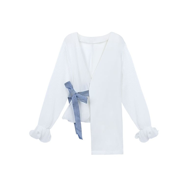 This blouse looks absolutely fantastic! It has long loose sleeves and a bow.