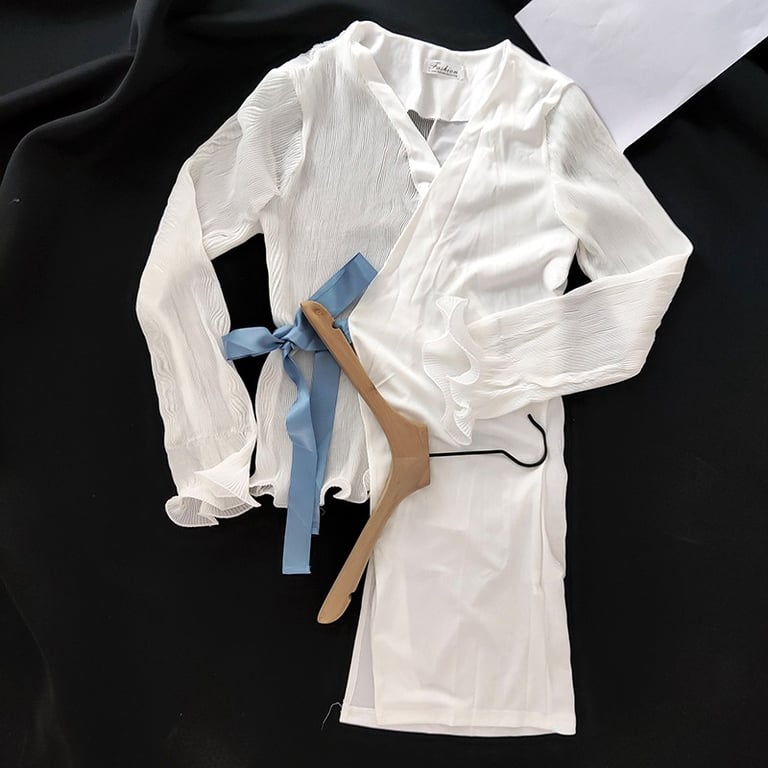 The blouse is folded in the middle, which gives it an elegant appearance.