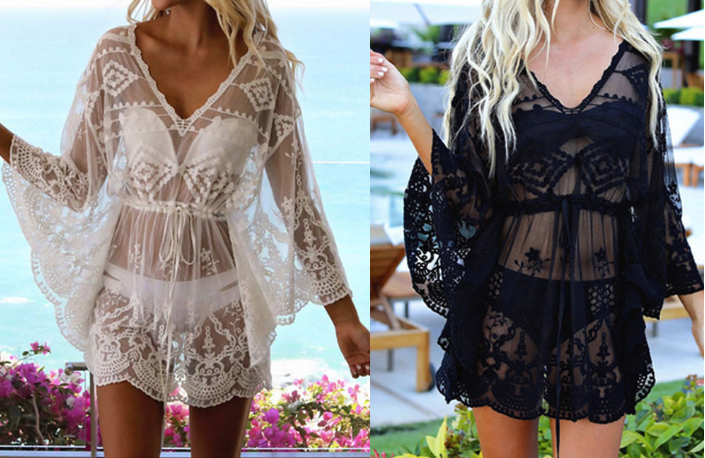 Transparent lace floral cover-up for bikinis