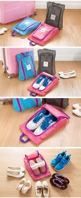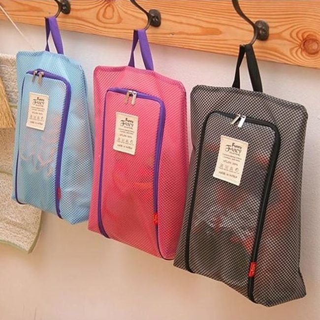 A practical travel bag that is ideal for comfortably transporting shoes. The integrated handle makes it easy to carry. Available in a selection of three colour options. The dimensions of the bag are 36 x 27 cm.