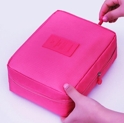 – the lid of the cosmetic bag has two mesh pockets for powder and blush