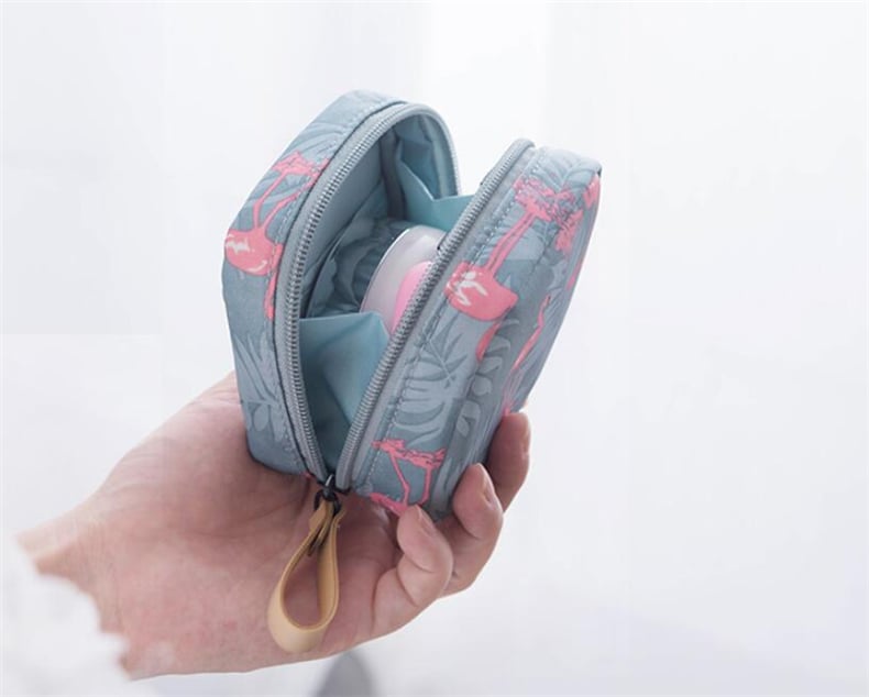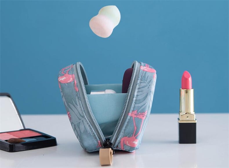 Travel mini cosmetic bag with flamingo print and more