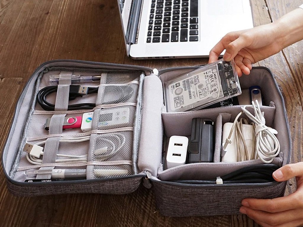 Keep all your small electronics neatly and easily stored with this practical organiser. It features many handy compartments for all your cables, chargers, as well as SD cards or HDDs. The walls of the organiser are padded, ensuring your small items are well protected. An ideal gift for anyone who travels frequently and wants to keep their electronics nicely together in one place.