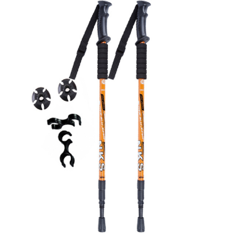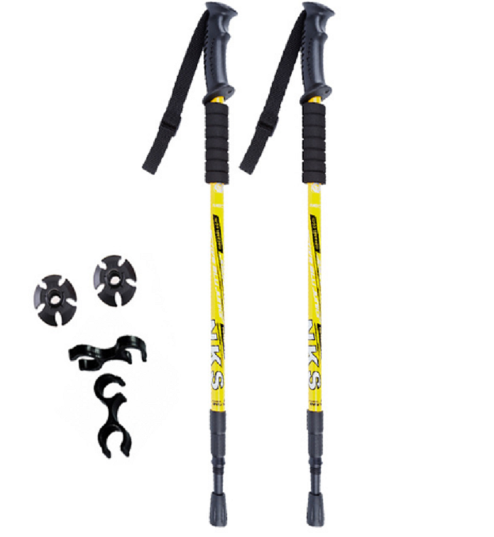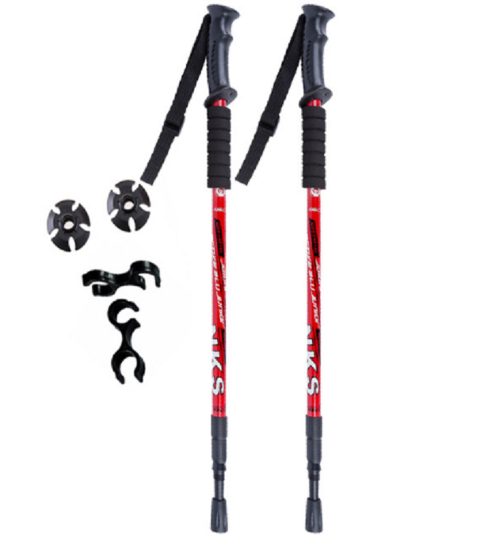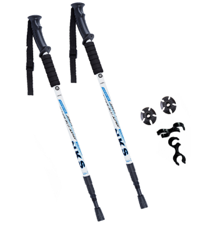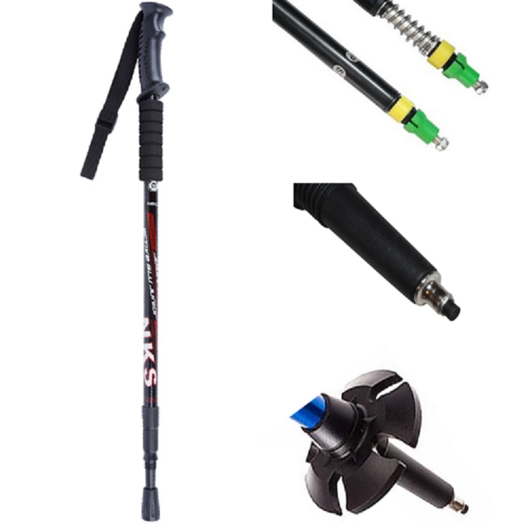 Trekking telescopic poles with an anti-shock system provide support while walking, absorb impacts, offer balance, and protect joints during long hikes.
