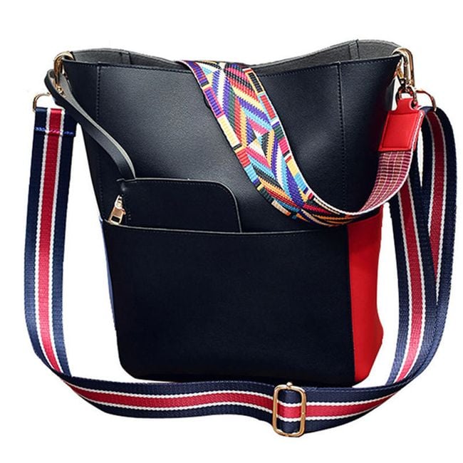 Do you love fashion trends but also practicality? Then this handbag is perfect for you! Inspired by the style of famous fashion designers, it is spacious and comfortable to carry. Everyone will surely appreciate its interchangeable coloured straps, which catch the eye from a distance. It comes with one shorter strap for wearing over one shoulder and one longer strap. The entire handbag fastens with a magnetic snap and also includes a small detachable zip pouch to securely store your valuables. You can choose from several colour options.