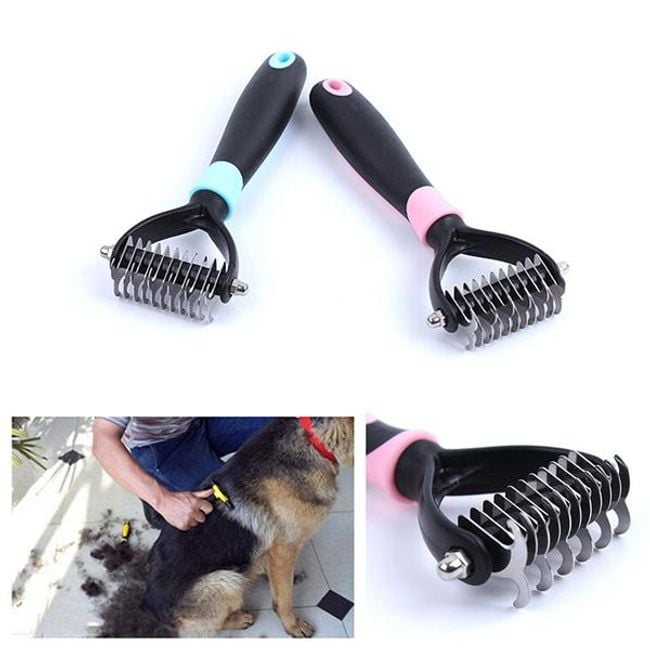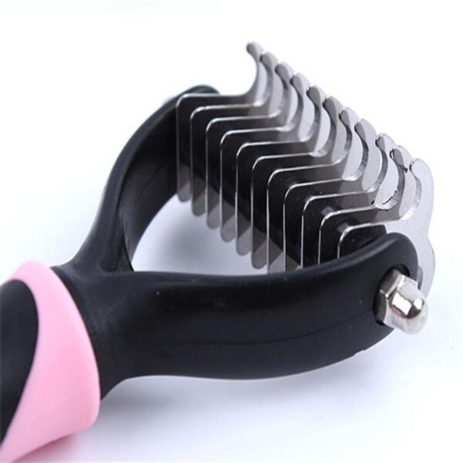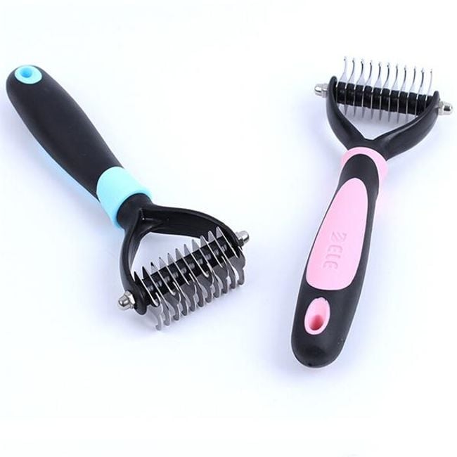This grooming rake is a must-have for every dog owner. The rake is suitable for dogs with coarse fur, allowing you to easily remove matted areas and undercoat. Your dog's coat will look well-groomed, shinier, and healthier. The rake has 11 blades. Be careful when using it and do not press too hard on your dog's skin. Available in two colours.