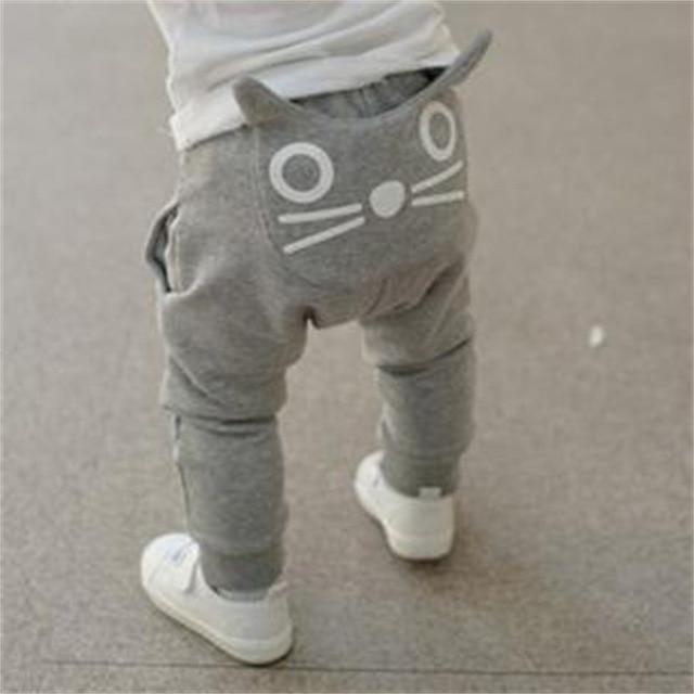 Children's trousers for spring or autumn, featuring a beautiful kitten design.
