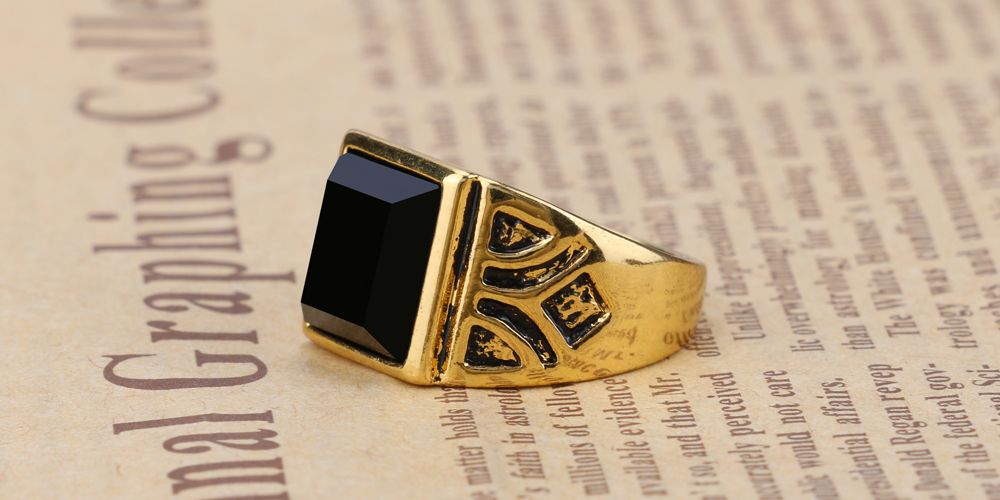TrueGents™ Men's Gold-Plated Ring with Black Stone