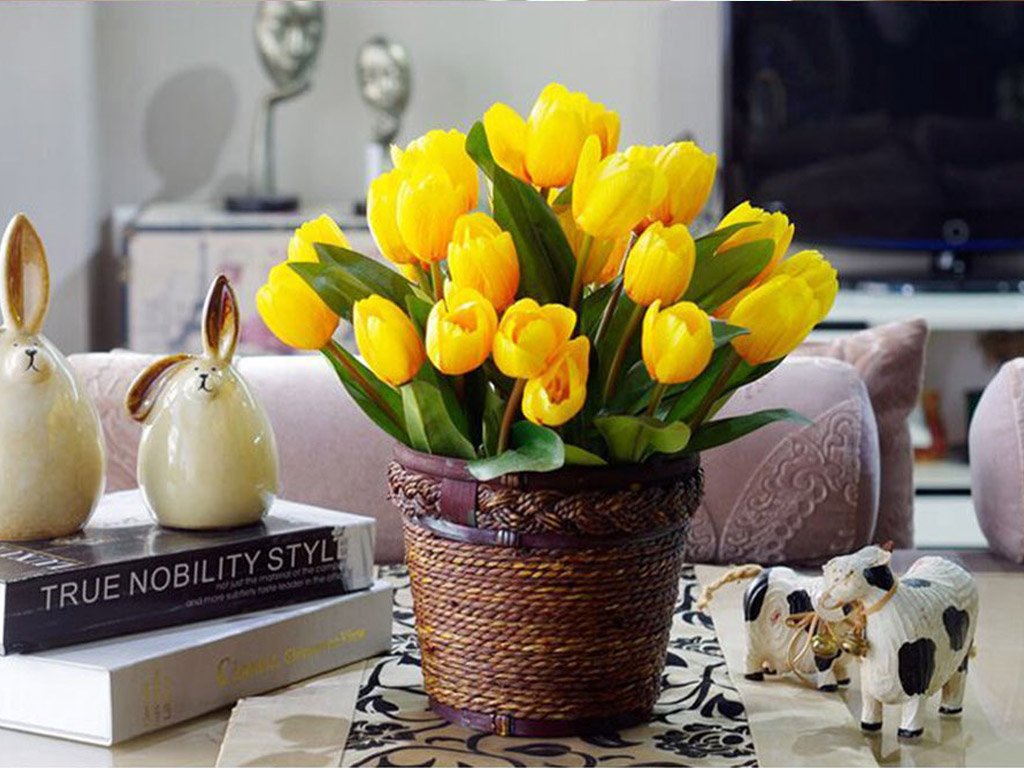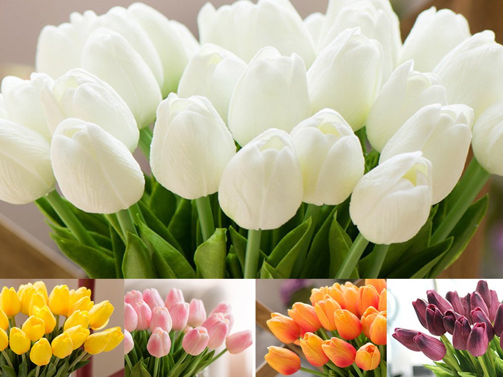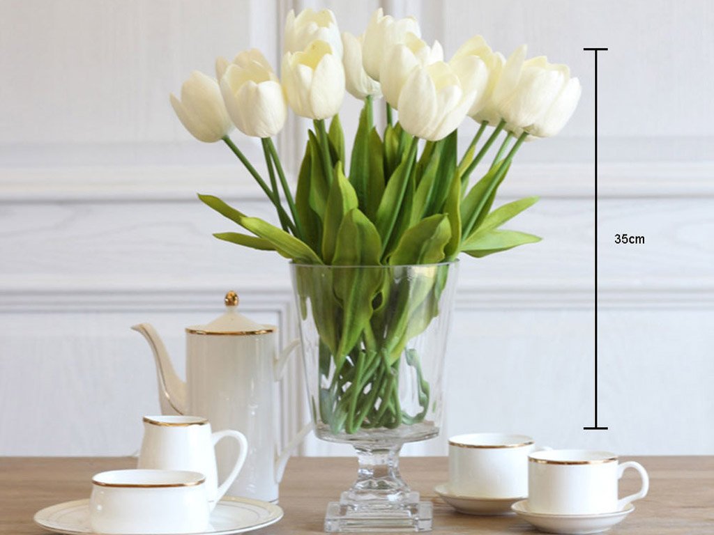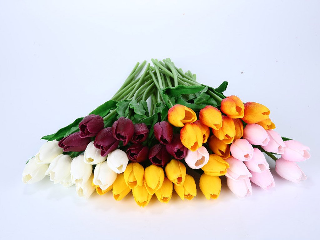 Artificial tulip flowers can be used individually or in larger quantities, like a large bouquet, to decorate your home. The package contains 10 artificial tulips, available in 5 colours. Size approximately 35 cm.