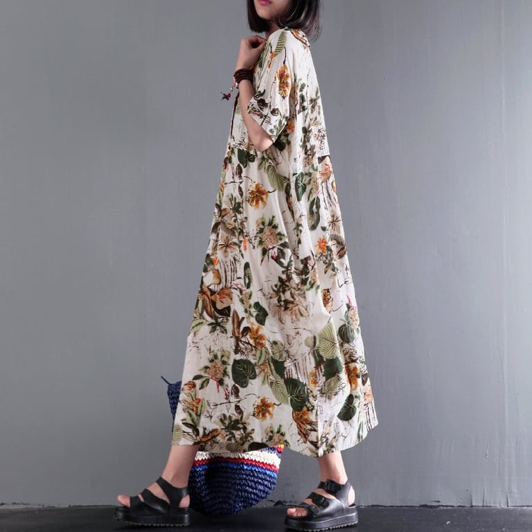 Women's comfortable dress. Loose tunic cut with short sleeves.