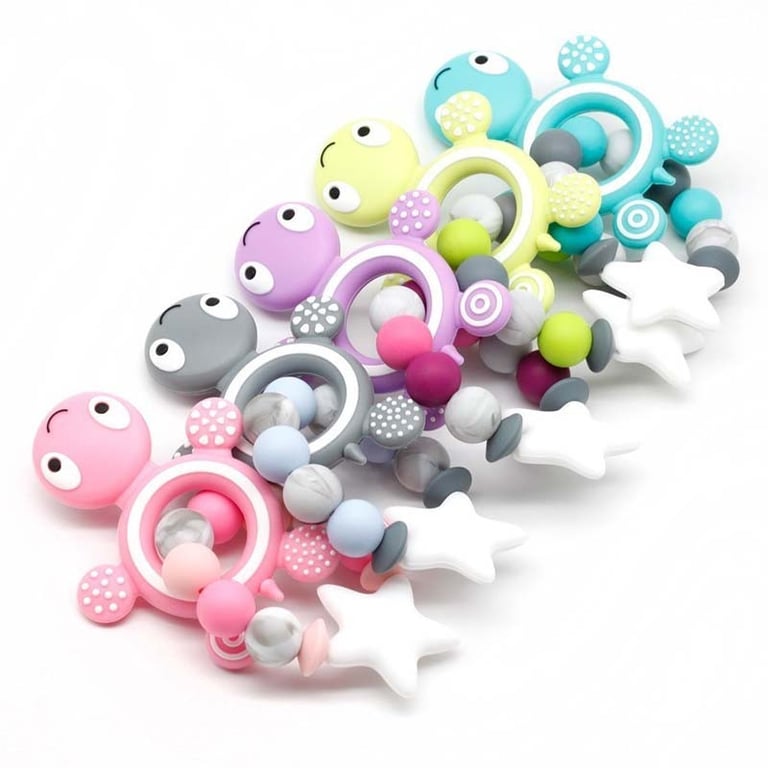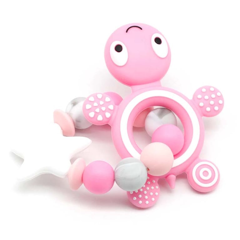A silicone bead bracelet adorned with a cute little turtle that will surely capture children's attention.