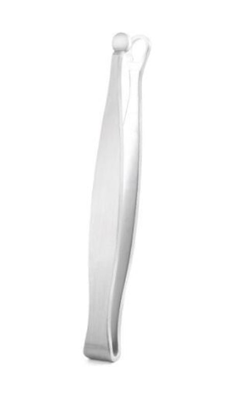 A tweezer that allows you to painlessly remove hair from your nose. Just insert it into your nose and squeeze. It is made of stainless steel.