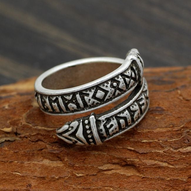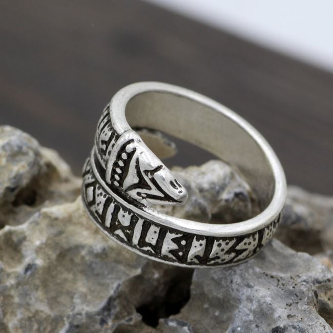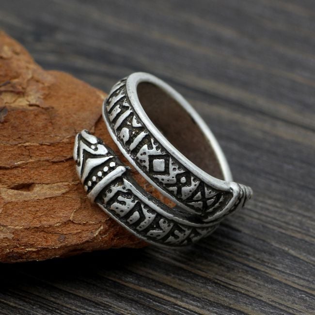 The ring twisted in a Nordic motif serves as an interesting accessory. The size is adjustable.