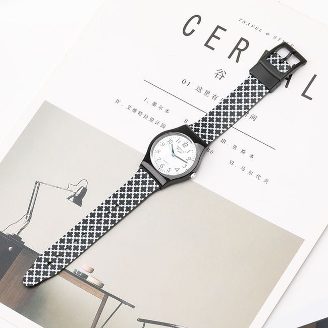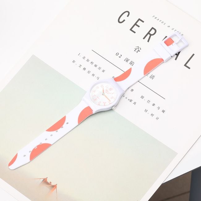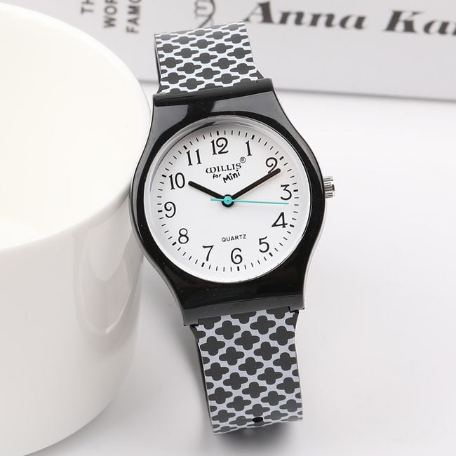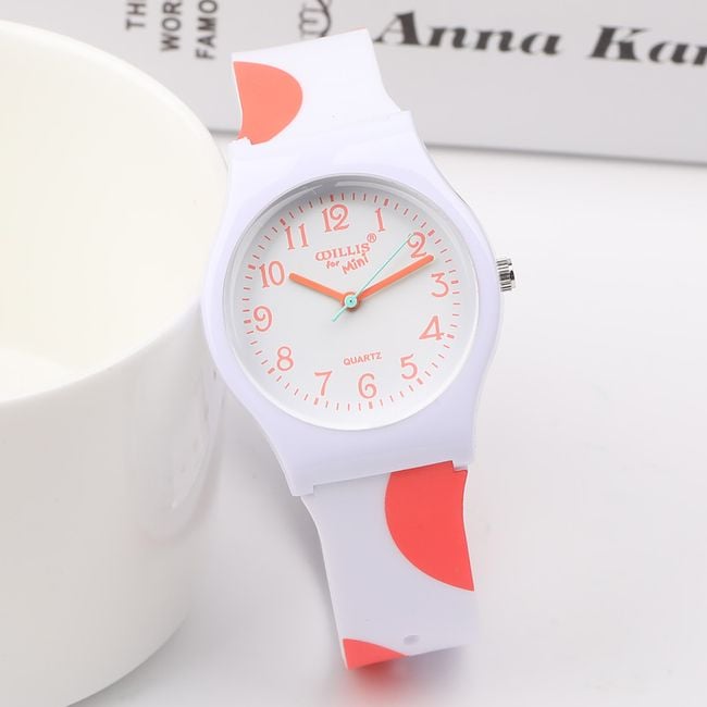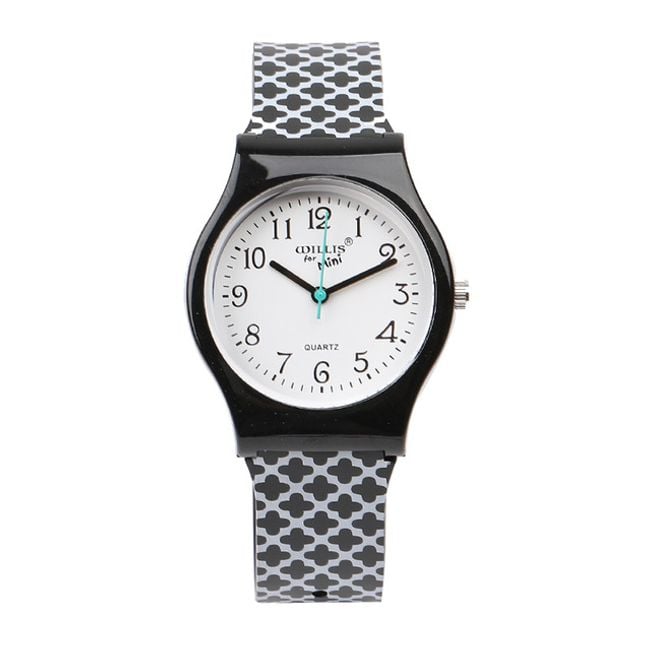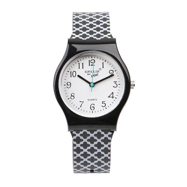 The watch with a decorated silicone strap will stand out on any woman's wrist. You can choose from 2 colour options.