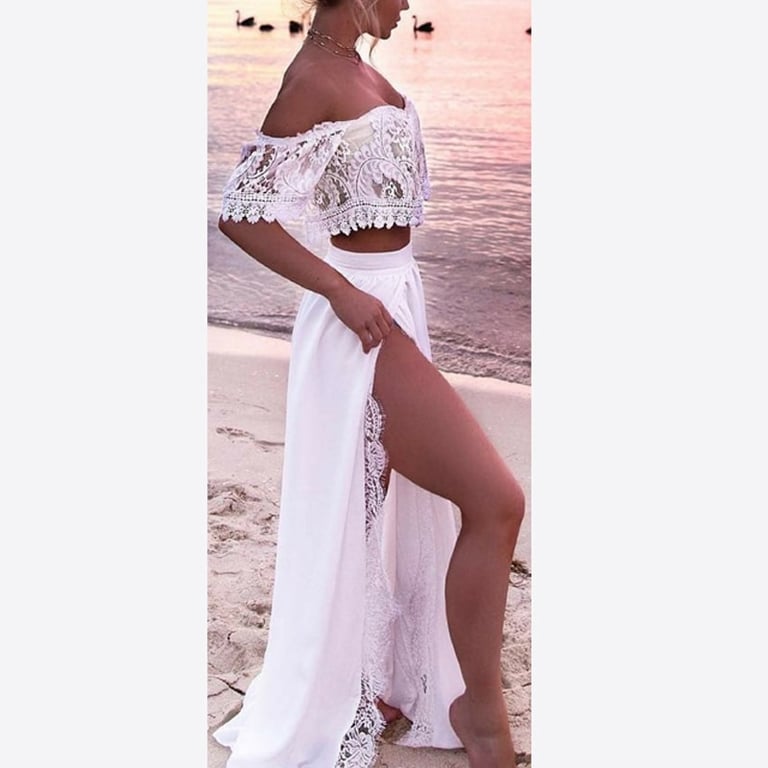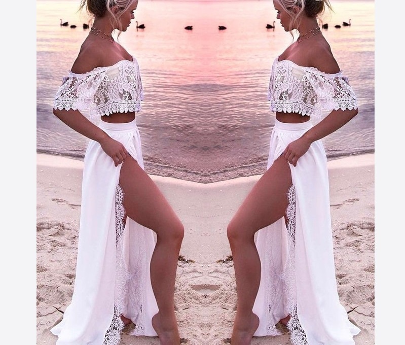 Two-piece white lace dress