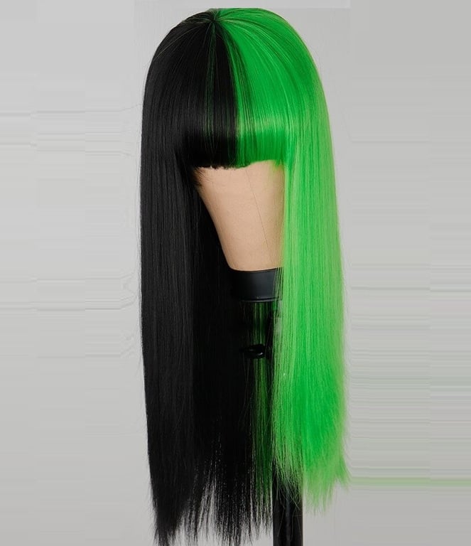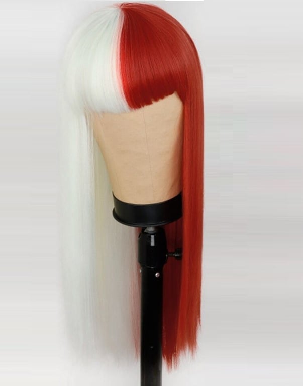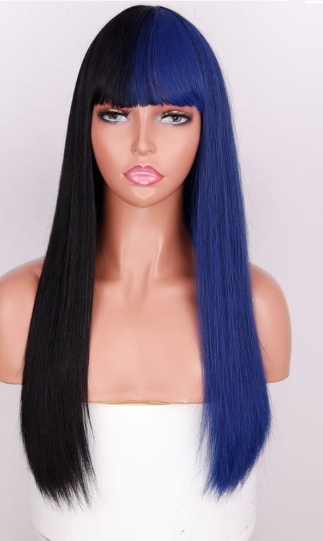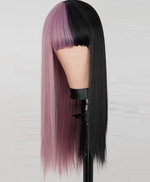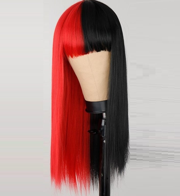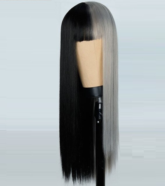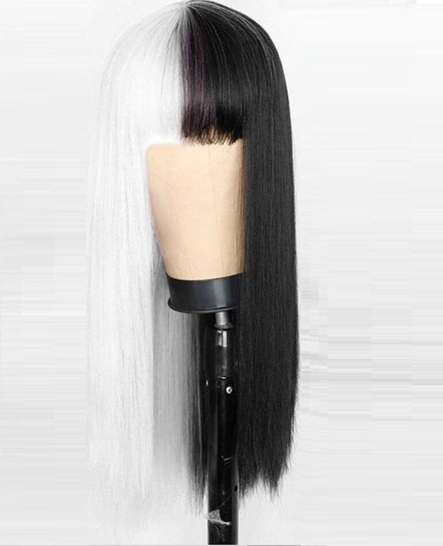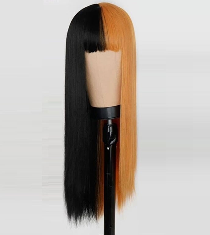 Women's straight two-tone wig with bangs. Suitable especially for parties. Can be washed with shampoo and styled with hairspray. Made from very high-quality synthetic fibres and therefore is resistant to damage. Comfortable for extended wear.