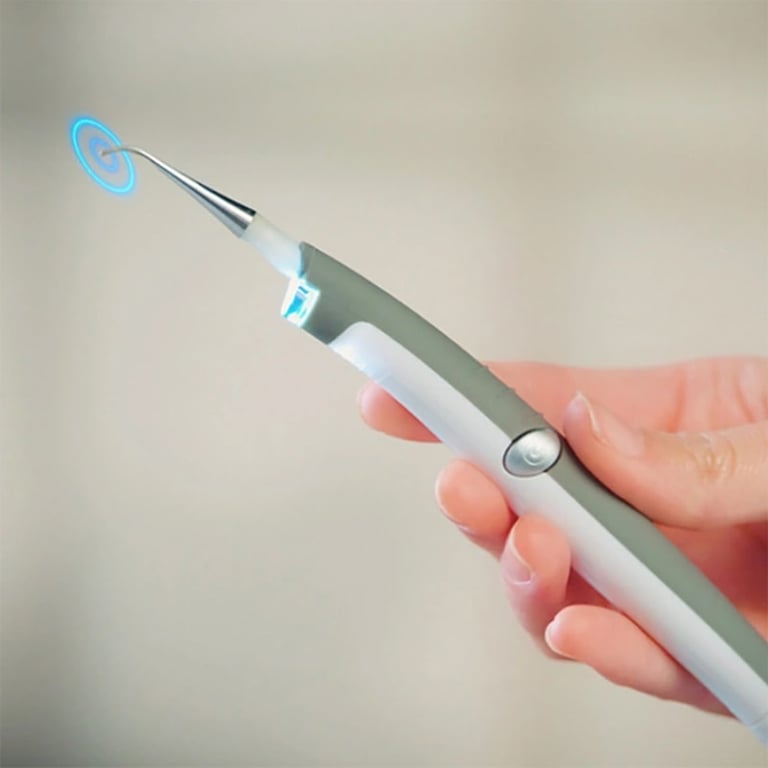 Intensive ultrasonic cleaning with 3000 vibrations per minute reliably removes dental plaque, tartar, and other deposits. The ergonomic tip reaches even hard-to-access areas. The LED light on the device ensures maximum safety during use. Incomparably better results than cleaning with a regular toothbrush from the comfort of your home, without unnecessary fees and stress.