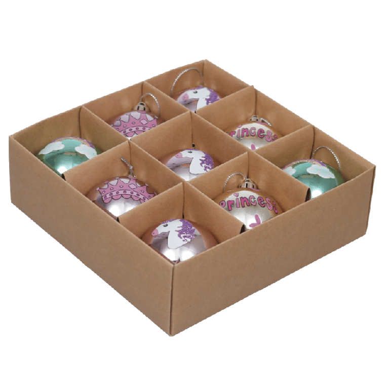 The unicorn Christmas bauble set includes 9 baubles in 4 different designs. Hang them on the branches of your tree or use them to complement a festive wreath - the possibilities are endless! Order your set today and breathe in the festive spirit!