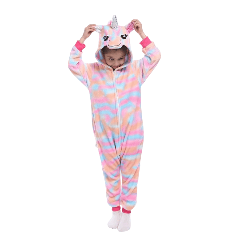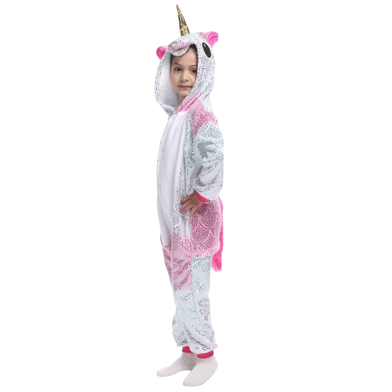 The girls' unicorn onesie is made from soft and warm material, it is comfortable to wear and perfect for celebrations. Its colourful, fun design is sure to be a hit with all children. With its cute unicorn hood, your child will feel like part of a magical world.