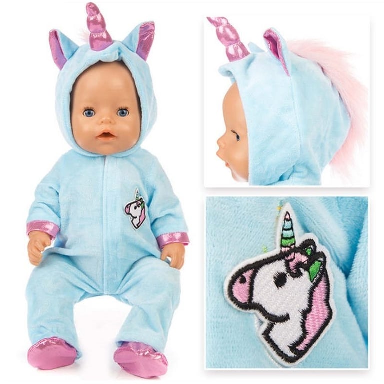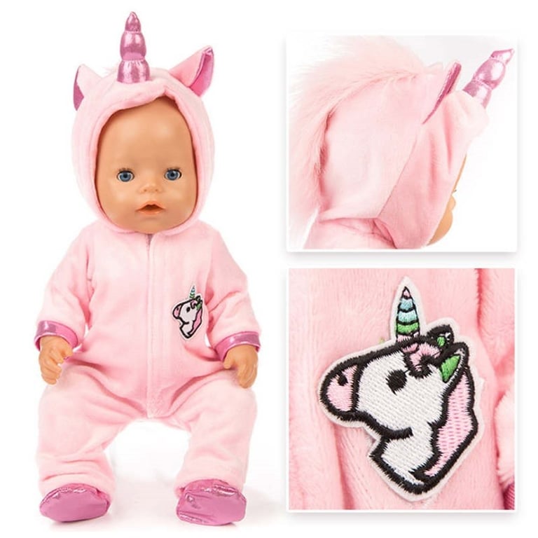 A beautiful onesie with a hood featuring a unicorn design. The shiny horn and details add to the charm of this delicate outfit.