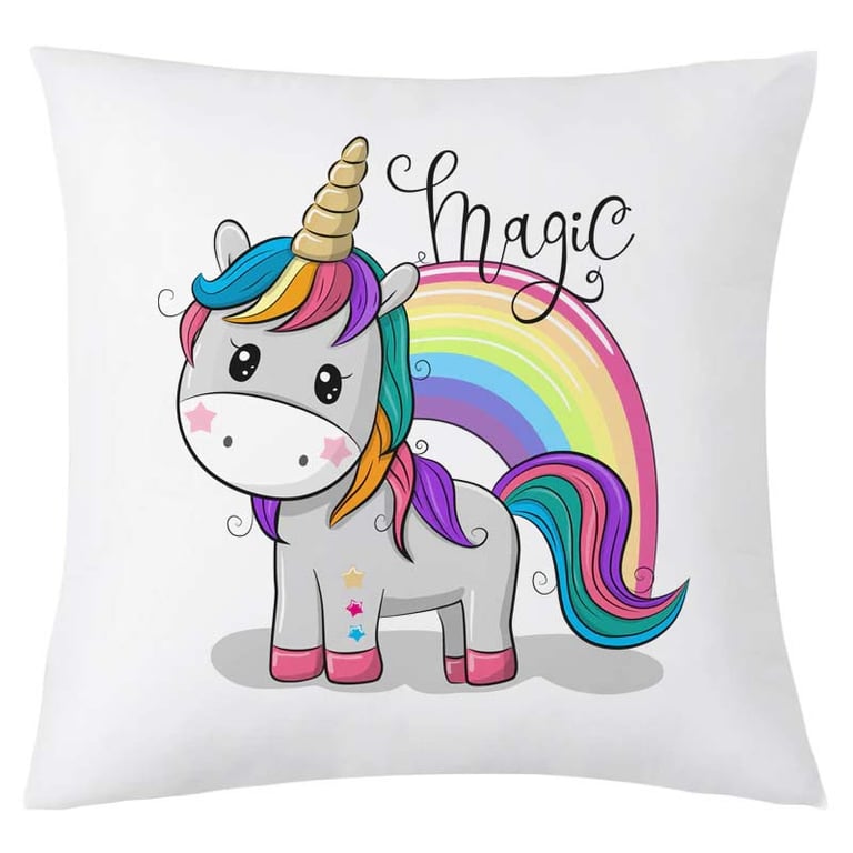 Stylish cushion with a cute unicorn motif that will easily decorate a room, café or study! Product features: - material: polyester, cotton - colour: see photo - size: 45 × 45 cm - package contents: 1 piece