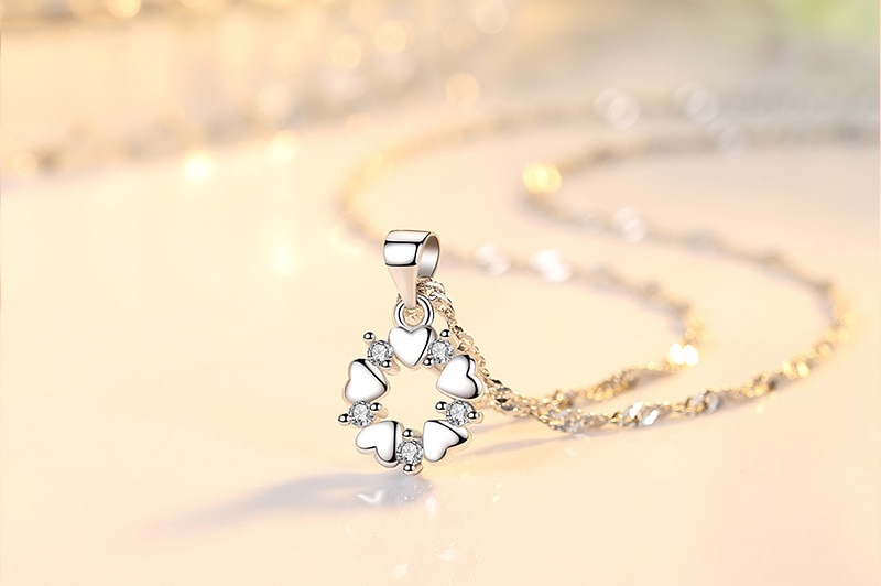 Unique necklace with a pendant made of small hearts